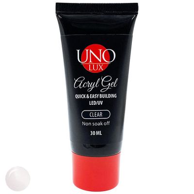 Полигель “Uno Lux” – материал, объединяющий в себе лучшие свойства акриловой пудры и геля: удобство работы и прочность покрытия. Применяется для моделирования искусственных ногтей, увеличения длины ногтевой пластины. Благодаря своей пластичности акрил-гель легок в работе, великолепно разглаживается по поверхности, не растекается и плотно прижимается с минимальной толщиной у кутикулы и боковых валиков